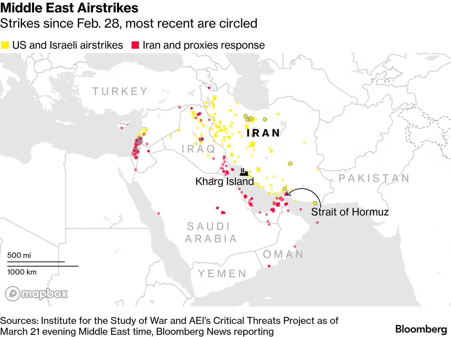Tensions between the US and Iran escalated further over the weekend, with Donald Trump giving Iran a two-day deadline from Saturday evening to reopen the Strait of Hormuz or have its power plants bombed. Iran said that if its power facilities were attacked, it would close the straight "completely," state TV reported. Check out our live blog for the latest updates. ![]() Markets tumbled across the board. Oil climbed, with Brent rising above $113 a barrel, while gold wiped out this year's gains. Selloffs in stocks and bonds intensified. More than 40 energy assets across nine countries in the Middle East have been "severely or very severely" damaged by the war, the International Energy Agency said. Its director compared the current disruptions to the oil crises of the 1970s and the 2022 natural gas crisis "all put together." Goldman raised its oil price forecasts and now expects Brent to average $85 a barrel this year. ![]() In the US, Trump is directing ICE agents to airports, where "they will do Security like no one has ever seen before." The goal is to help ease long security lines, triggered by TSA agents—who haven't been paid in several weeks—calling in sick. Separately, Markwayne Mullin cleared a committee vote toward confirmation as secretary for the Department of Homeland Security. An Air Canada Express plane with 76 people aboard collided with a fire truck shortly after landing at New York's LaGuardia Airport, the latest in a series of incidents that have put aviation safety in the spotlight. Two pilots were confirmed dead, the Port Authority said. LGA will be closed until at least 2 p.m. Deep Dive: Cuba Prepares![]() Photographer: Yamil Lage/AFP A senior Cuban official told NBC the country is preparing for a possible military assault as Trump increases economic pressure on the government in Havana and suggested it could be the next US target after Venezuela and Iran.