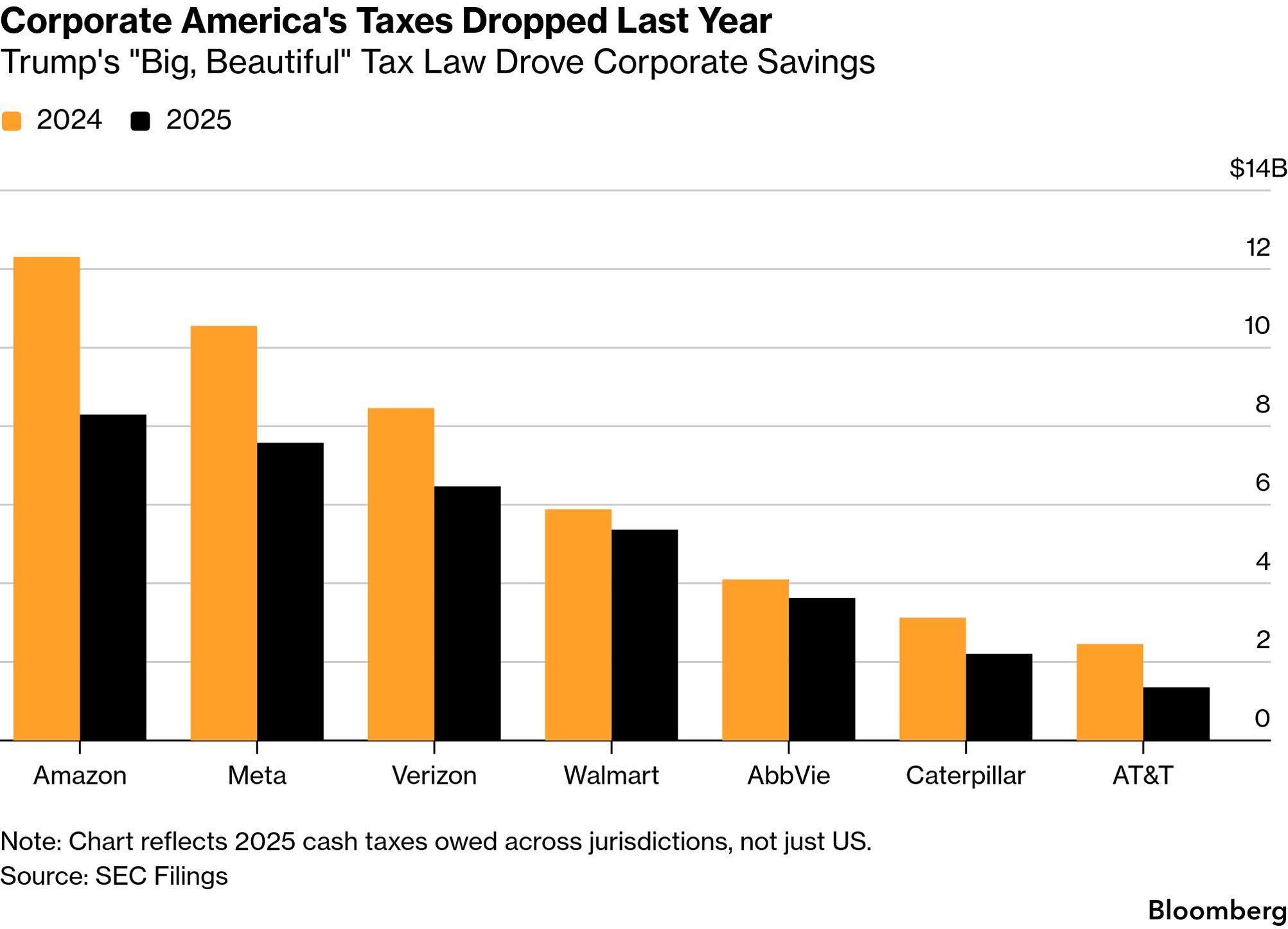 ![]() ![]() I'm Jonathan Tamari, senior Washington reporter for Bloomberg Government, and each weekday I'll be coming to you with inside-the-room reporting and insights that reveal what's really happening in Washington—and how it impacts you. Email me with feedback and comments here. If this newsletter was forwarded to you sign up here. Today, lower corporate tax bills, higher gasoline prices and Wall Street's March madness bracket. Big Beautiful BusinessesThe Donald Trump-GOP tax bill has been very good for some huge businesses. Amazon's federal cash taxes fell roughly $4.8 billion last year compared to 2024 – a 64% drop despite rising US revenues. Eli Lilly shaved off $500 million from its federal cash tax payments, even as its US income grew by $13 billion, Bloomberg's Caitlin Reilly reports in a deeply researched story this morning. She found that nearly a dozen of the 50 largest US-listed companies directly attributed tax savings to Trump's law, according to regulatory filings. In all, annual corporate tax revenue dropped $65 billion following the passage of the bill. ![]() The big savings for big businesses complicates the middle-class focus Republicans want when they promote the One Big, Beautiful Bill. The law is the signature accomplishment from Trump's first year and a key piece of the GOP's midterm pitch. Republicans have long argued that cutting business taxes stokes investment and creates widespread opportunity. But they've primarily sold this bill as a boost for everyday people, highlighting cuts to taxes on tips and overtime. They've tried to rebrand the legislation as the Working Families Tax Cuts. The law, though, has has polled poorly and been attacked by Democrats as a giveaway to the wealthy and big business. Meta's total cash taxes across jurisdictions dropped by $3 billion, or nearly 30%. Verizon and AT&T roughly halved their federal cash payments. "So far we're seeing corporate effective tax rates that are as low as anything my organization has measured in the last 40 years," Matthew Gardner, a senior fellow at the left-leaning Institute on Taxation and Economic Policy, told Caitlin. His group found more than 200 companies reporting significant tax savings. There may be many reasons for falling payments, including changes in annual revenue, investments, and available deductions. "I love the great Big Beautiful Bill," Trump told House Republicans at a fund-raiser last week. "We did a lot." For individual income tax filers savings were up nearly 11% on average through March 20, IRS data shows – good for $350 apiece. Top News