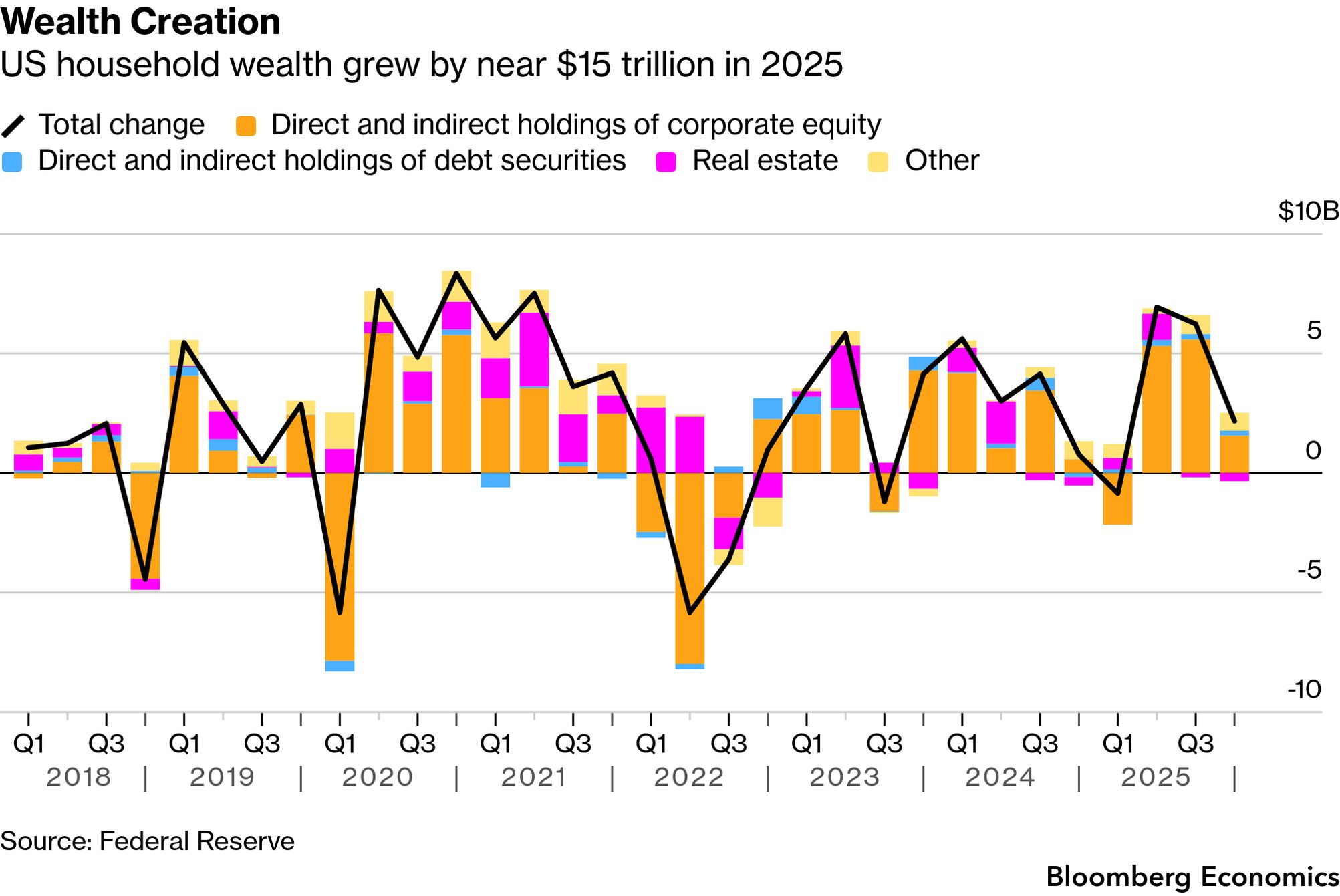 Don't MissTop Justice Department leaders are rallying behind a US attorney's efforts to investigate Federal Reserve Chair Jerome Powell and the White House isn't opposing it, amping up the high-stakes clash with major implications for who will lead the central bank. The Trump administration is transferring management of the $1.7 trillion federal student loan portfolio from the Department of Education to the Department of the Treasury, the most significant step yet in the White House's efforts to dismantle a cabinet-level agency. The Chinese founder of the massive router maker facing national security probes by the Trump administration has applied for an expedited visa under the Trump Gold Card program. The FBI has opened an investigation into former National Counterterrorism Center Director Joe Kent, who resigned because of the Iran war, over alleged unauthorized disclosures of classified information Mortgage rates rose for a third week, reaching a three-month high of 6.22% for the average 30-year fixed loan, as wartime inflation fears drove up yields for the government bonds that guide home loans. Sales of new homes fell by more than expected in January to the lowest since 2022, reflecting a pullback in buyer demand across the country. Applications for unemployment benefits in the US fell last week to the lowest level since January, adding to evidence of limited layoffs. ![]() Wall Street lending giants would get relaxed capital requirements under proposals unveiled by the Federal Reserve, in a move that could potentially unleash billions of dollars for lending, share buybacks and dividends. Trump's pick to lead the Department of Homeland Security advanced through a Senate committee despite opposition from the panel's chair, Rand Paul, who argued nominee Markwayne Mullin's "anger issues" made him unfit. Watch & ListenToday on Bloomberg Television's Balance of Power early edition at 1 p.m., hosts Joe Mathieu and Kailey Leinz interviewed Democratic Representative Sam Liccardo of California about the economic impact of the war with Iran and Congress' role. ![]() On the program at 5 p.m., they talk with former Defense Secretary Leon Panetta about the cost of the war and the US relationship with Israel. On the Trumponomics podcast, host Stephanie Flanders speaks with with Nobel Prize–winning economist Daron Acemoglu to unpack one of the most urgent questions facing the global economy: how is artificial intelligence changing the future of work, and what are the potentially dire consequences for society and democracy? Listen on Apple Podcasts, Spotify or wherever you get your podcasts. ![]() Chart of the Day![]() Driven by stock market gains, total household wealth in the US rose by nearly $15 trillion last year after a fourth quarter gain of $2.2 trillion, a Federal Reserve report showed Thursday. The value of Americans' equity holdings increased $1.6 trillion last quarter and are up by more then $10 trillion over the year. Stock market wealth is concentrated among wealthier households that hold more equities. For the middle class, who tend to hold more wealth in real estate, the gains were more tepid. The Fed's report showed the value of household real estate holdings fell roughly $350 billion last quarter, reflecting a sluggish housing market, but is still up $1.1 trillion in 2025. — Alex Tanzi What's NextConstruction spending in the US for January will be reported Monday. Import and export prices in February will be released Wednesday. The University of Michigan's index of consumer sentiment in March will be published March 27. Seen Elsewhere