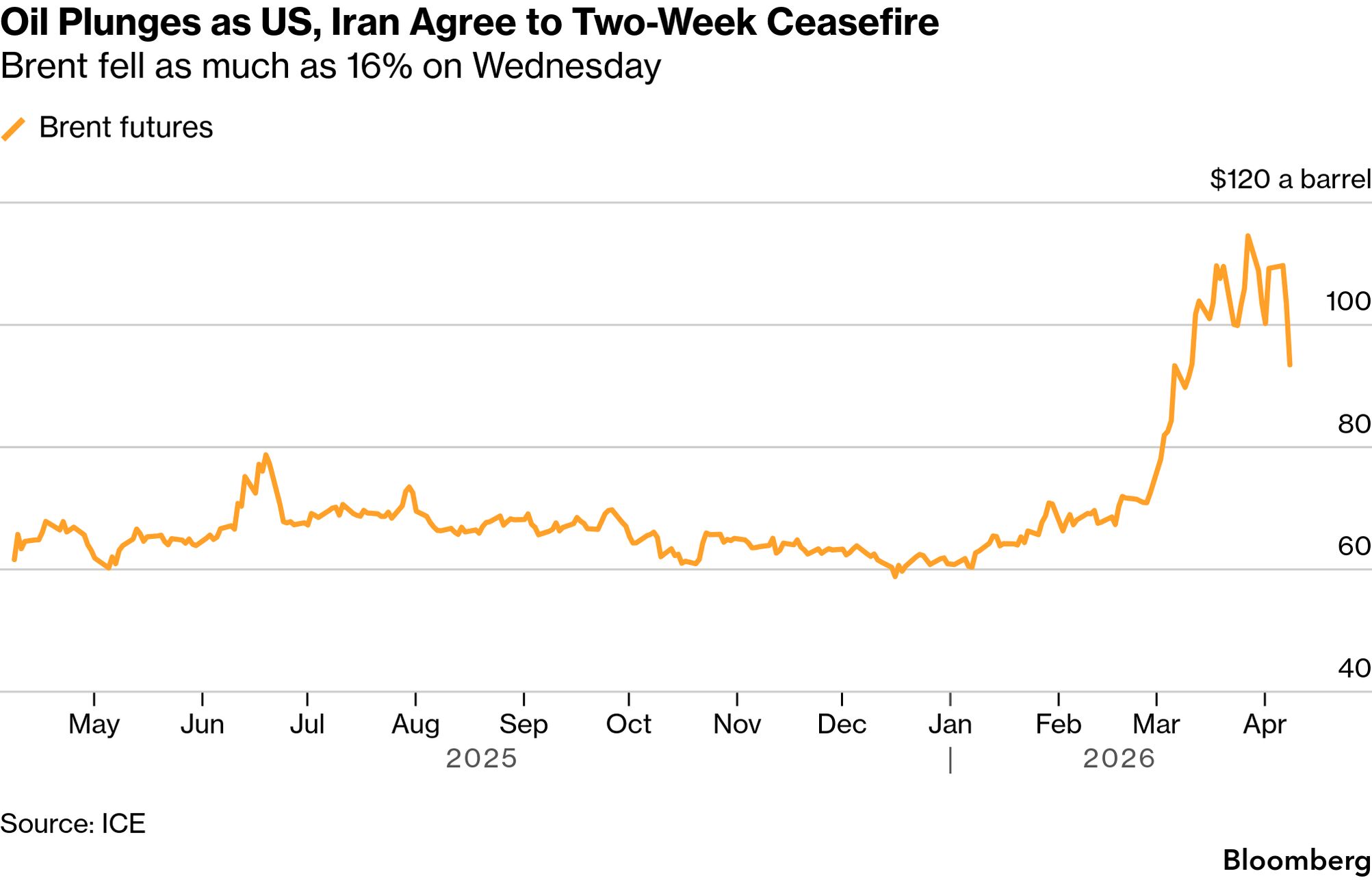 The US and Iran agreed to a two-week ceasefire in exchange for Tehran reopening the Strait of Hormuz. Trump said the US will help ease traffic through the waterway, with more than 800 vessels still trapped in the Persian Gulf. Pakistan’s pivotal role as mediator was hailed as a diplomatic coup, but the conflict risks leaving the US looking weakened in the eyes of its adversaries and more attacks in the region were reported. Markets greeted the truce with jubilation: Oil posted its biggest drop in almost six years and gas prices plunged, while global equities surged as big funds piled into Treasuries and AI stocks, and gold rallied.