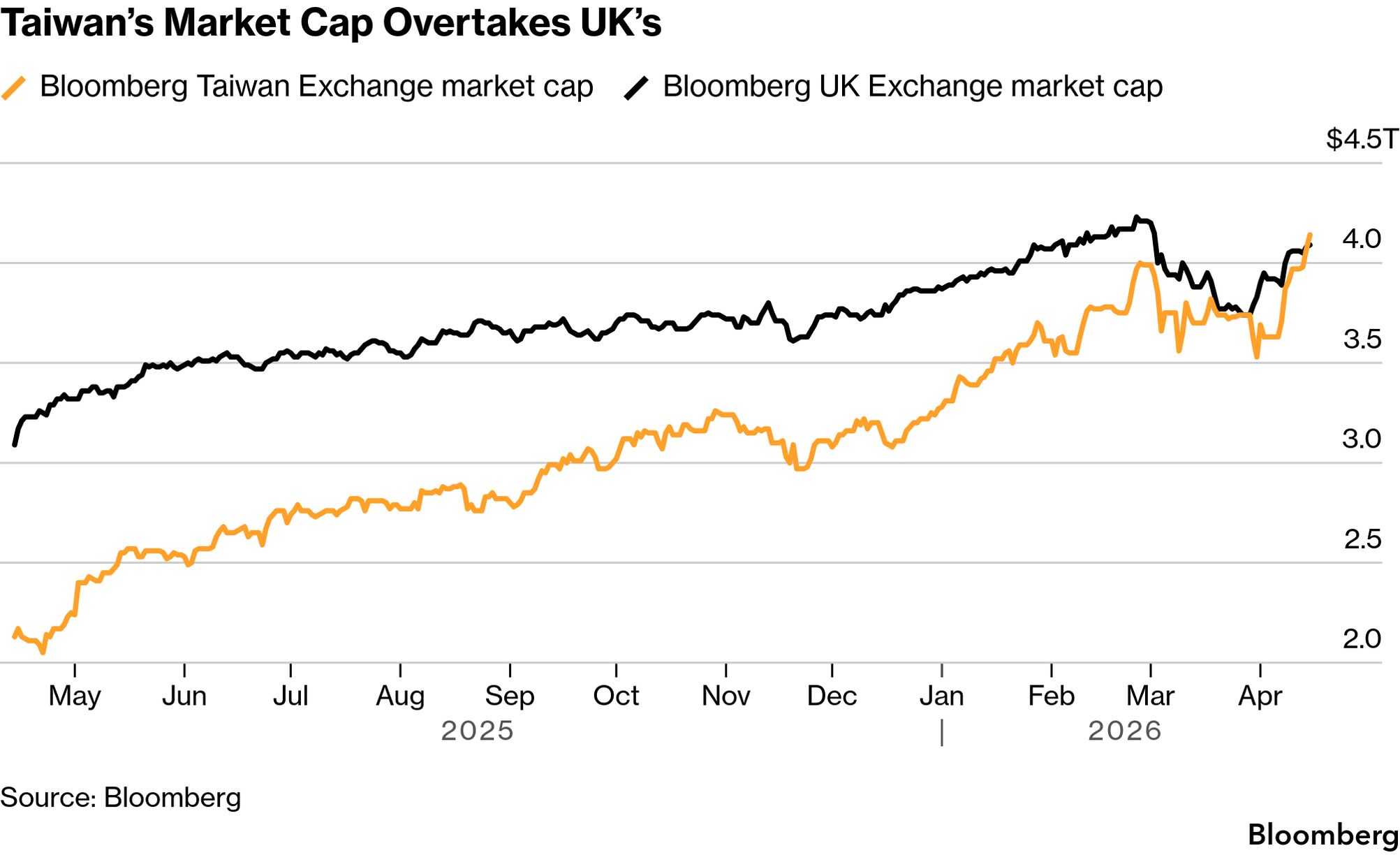 Taiwan overtook the UK in stock market value, making it the world’s seventh largest, as the island’s tech firms regain favor amid the AI boom and hopes for further de-escalation in the Iran war. The feat comes after the Taiex Index recouped all losses driven by the conflict — one of the first major markets to do so — to reach a record high. And FinallyOn the surface, Aragón is a Big Tech data-center dream. Vast, uninterrupted stretches of the Spanish region are empty, clean power dominates and electricity prices are generally 20% to 30% less than the European average. Labor costs are among the lowest in Western Europe, with the result that Aragón is expected to host about 25 data centers in the coming years. Officials speak boldly of the jobs and prosperity that await, yet as this Big Take explains, the reality of the investment boom is less tidy, with locals prised from their land, and small towns at the coalface of the buildout taking the government to court to address concerns ranging from water use to tax exemptions.
