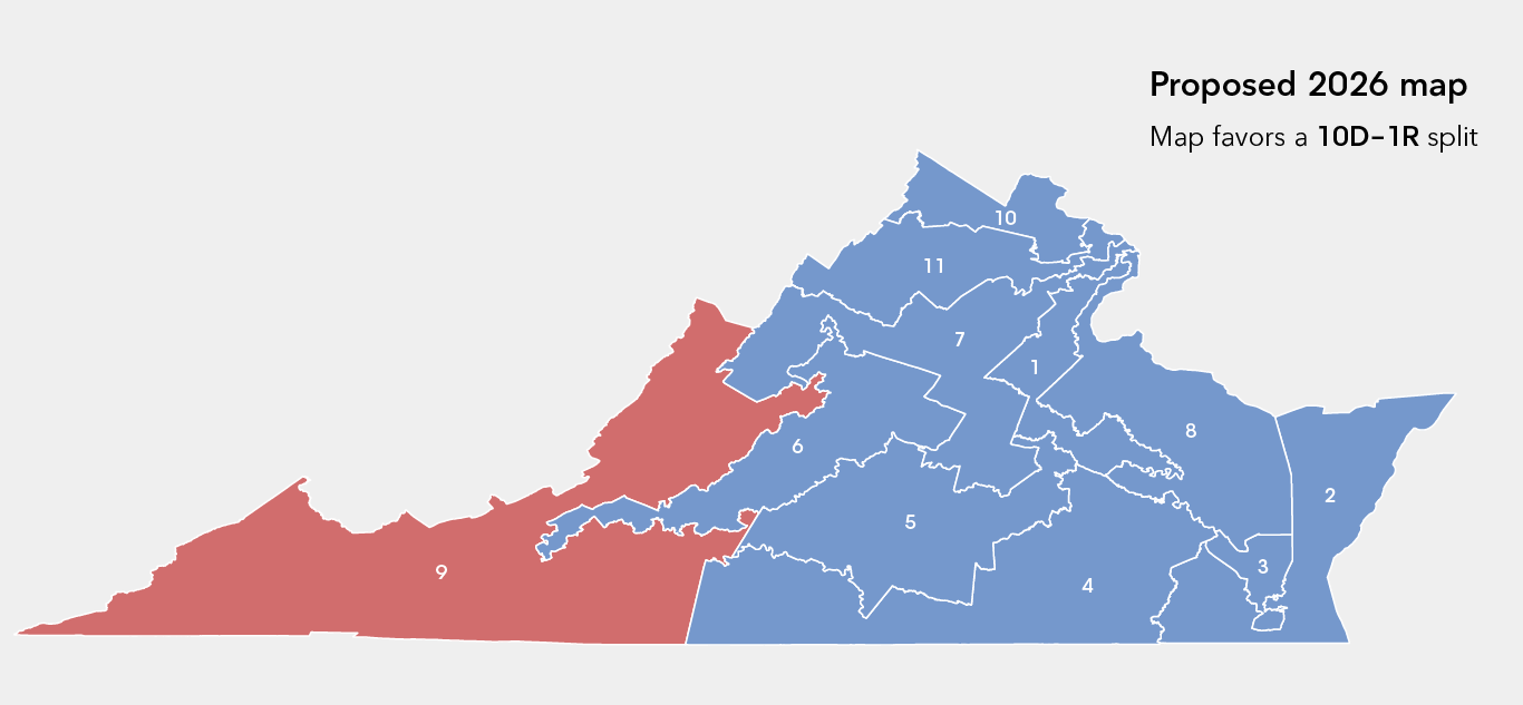 Go Deeper With BGOVVirginia Democrats are sparing no expense in their bid to enact an aggressive new congressional map that could sway control of the House, Greg Giroux writes. They’ve spent more than $39 million on ads asking voters to approve a proposed state constitutional amendment allowing new district lines favoring Democrats in up to 10 of 11 districts. The new map could produce a net gain of four seats in the November midterms.