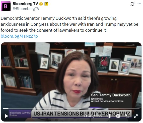 About $300 billion worth of goods subject to Trump administration tariffs are avoiding the levies annually and reaching the US from Southeast Asia and Mexico, exposing vulnerabilities in enforcement. Acting Attorney General Todd Blanche signed a directive that reclassified state-regulated marijuana as a less dangerous drug, a major shift that could increase legal cannabis sales and help a struggling industry. Must Reads From Bloomberg GovernmentHouse conservatives signaled opposition to the budget blueprint just hours after the Senate advanced it early this morning, threatening the GOP’s immigration funding plans. Obamacare sign-ups have dropped by over a million this year, with Trump administration officials claiming those who lost coverage were never entitled to it. But researchers say the data doesn’t back up that assertion. Watch & ListenToday on Bloomberg Television’s Balance of Power early edition at 1 p.m., hosts Joe Mathieu and Kailey Leinz interviewed Senator Tammy Duckworth, an Illinois Democrat and a member of the Armed Services Committee, about the war with Iran and leadership at the Pentagon.